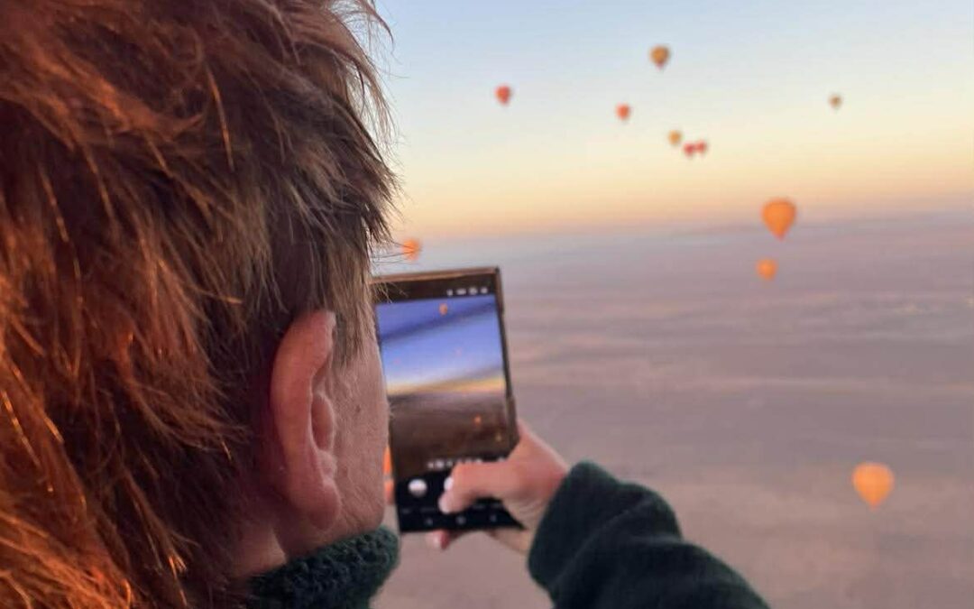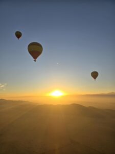 Men kanske mest oförglömligt var luftballongturen. Vi blev hämtade vid riaden tidigt en morgon för att åka ut till uppsamlingsplatsen för alla luftballonger. När vi kom fram möttes vi av ett hundratal ballonger som sakta fylldes med luft. Och sedan – lyftet.